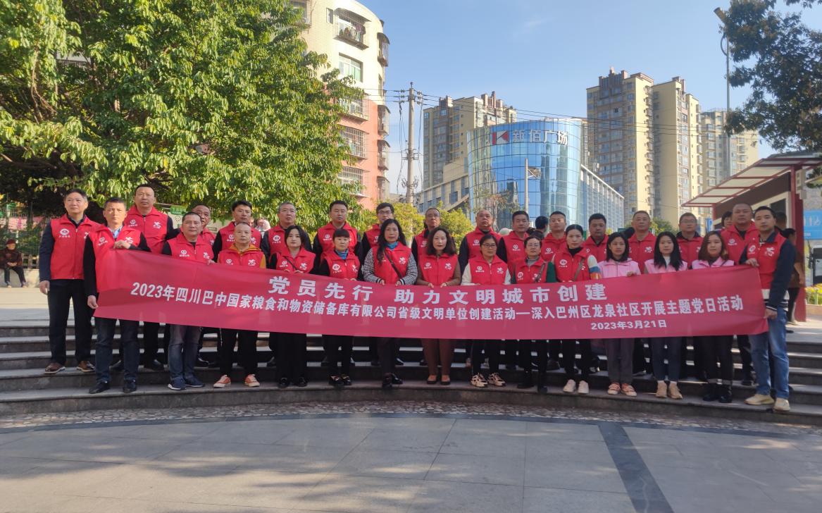 為充分發(fā)揮黨員先鋒模范作用,弘揚志愿精神,助力全國文明城市創(chuàng )建,3月21日,糧儲公司黨總支走進(jìn)巴州區龍泉社區開(kāi)展“黨員先行·助力文明城市創(chuàng )建”主題黨日活動(dòng)。